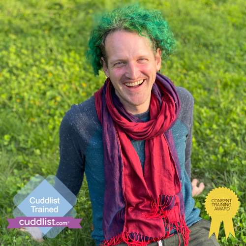 My name is Ian (they/them), and I am a professional cuddler in Seattle, WA who trained with Cuddlist and Cuddle Party. I create a safe, platonic, and heart-forward environment where clients build practical skills to connect more deeply with themselves and with others.